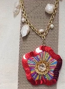 様々な種類の刺繍作品や天然石アクセサリー作品が